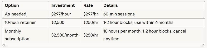 A private 60-minute implementation session where we work together on one AI challenge in your business.